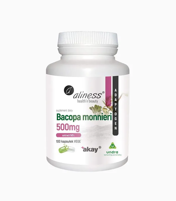 - Ekstrakt z Bacopa monnieri, standaryzowany na 50% bakozydów, gwarantuje wysoką jakość i skuteczność.