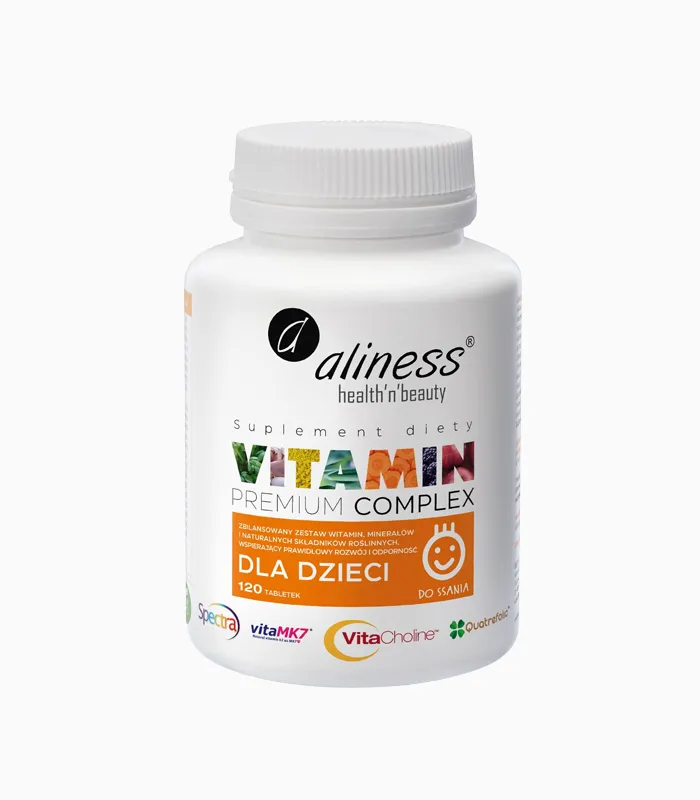 - Premium Vitamin Complex dla dzieci w formie łatwych do spożycia tabletek do ssania.