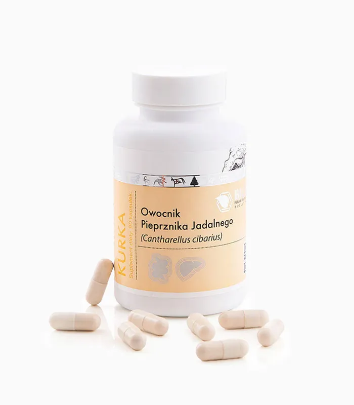 Kurka, znana także jako pieprznik jadalny, to suplement diety w kapsułkach, zawierający sproszkowany owocnik tego cennego grzyba. Kurki są cenione za swoje wyjątkowe właściwości i wartości odżywcze, które od dawna są wykorzystywane zarówno w kuchni, jak i tradycyjnej medycynie. Suplement ten jest doskonałym wyborem dla osób chcących wzbogacić swoją dietę o naturalne składniki roślinne. Dzięki sproszkowanej formie w kapsułkach, produkt jest wygodny w użyciu i można go przyjmować o dowolnej porze dnia.