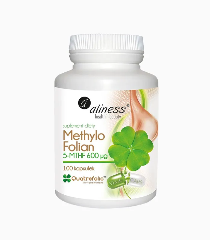 Methylo Folian 5-MTHF 600 μg to zaawansowany suplement diety od Aliness, skierowany do osób poszukujących najwyższej jakości folianów w wegańskiej formie kapsułek. Głównym składnikiem jest L-metylofolian wapnia (5-MTHF) – znany ze swojej wysokiej biodostępności. Dzięki temu organizm może go efektywnie wykorzystać, co jest kluczowe dla wsparcia metabolizmu homocysteiny i syntezy aminokwasów. Produkt jest idealny dla tych, którzy potrzebują zwiększyć spożycie folianów. Najlepiej przyjmować go w trakcie posiłku, co zapewnia optymalne wchłanianie.