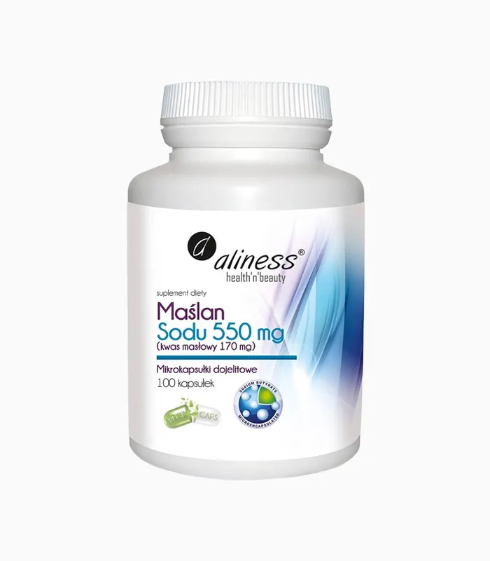 Aliness Sód – Maślan Sodu oferuje 550 mg maślanu sodu w jednej kapsułce. Jego unikalność wynika z formy – maślan sodu to krótkołańcuchowy kwas tłuszczowy, istotny dla procesów metabolicznych organizmu. Produkt przychodzi w wegetariańskich kapsułkach, co sprawia, że jest odpowiedni dla osób na diecie roślinnej. Dzięki starannie dobranym składnikom, Aliness zapewnia jakość i skuteczność, które mogą wspierać codzienne funkcjonowanie. Suplementacja maślanem sodu jest szczególnie korzystna w kontekście nowoczesnego stylu życia.