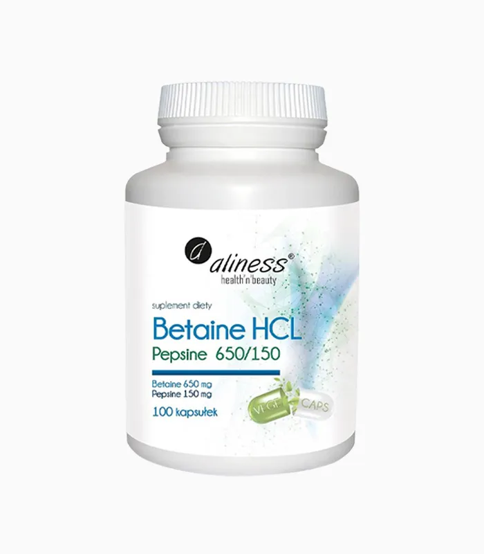 Trawienie – Betaina HCL + Pepsyna – 100 vege kapsułek – Aliness
