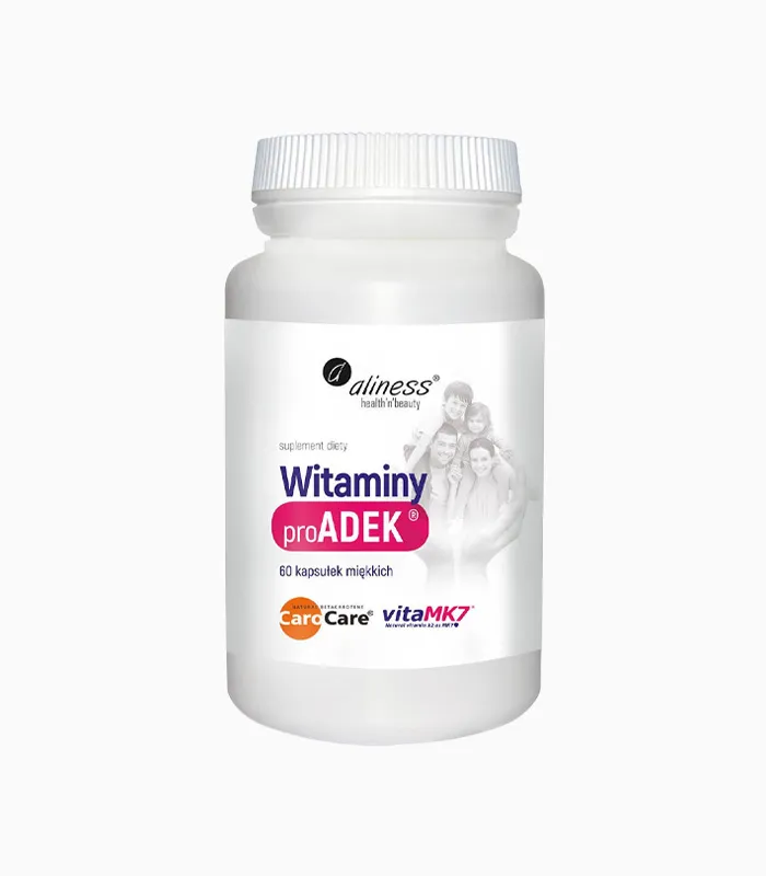 Witaminy proADEK® oferowane przez Aliness to zaawansowany kompleks witamin A, D, E i K, dostępny w formie 60 miękkich kapsułek. Dzięki tym witaminom rozpuszczalnym w tłuszczach, wspierasz swój układ odpornościowy oraz dbasz o zdrowie kości (witamina D). Produkt zawiera składniki najwyższej jakości, co zapewnia ich lepszą przyswajalność. To doskonały wybór dla tych, którzy pragną zadbać o swoje zdrowie w wygodny sposób.