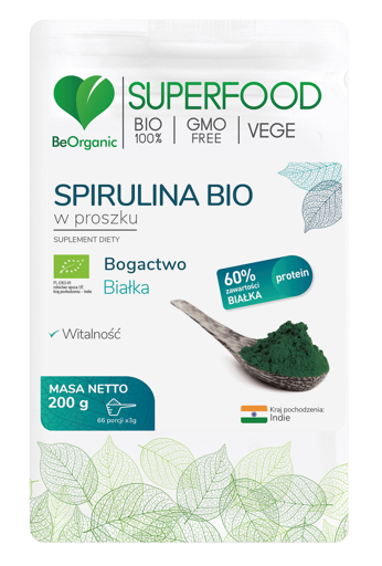 Spirulina BIO w proszku 200g SuperFood, beOrganic