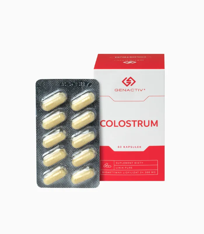 Colostrum w kapsułkach od Genactiv to suplement diety, który dostarcza 200 mg colostrum w każdej kapsułce. Wyróżnia się wysoką jakością surowca - pochodzi z pierwszego mleka - co zapewnia bogactwo naturalnych składników wspierających organizm. Colostrum jest naturalnym źródłem białek i przeciwciał, które mogą wzmacniać funkcje obronne organizmu. Kapsułki są proste w użyciu, co ułatwia włączenie ich do codziennej diety.
