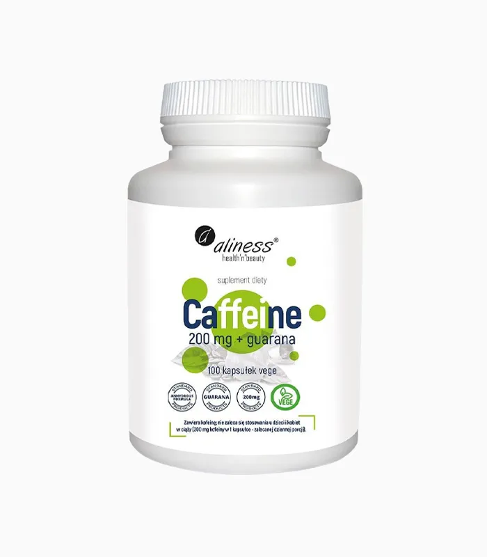 Kofeina – Caffeine 200mg z guaraną, 100 wegetariańskich kapsułek, Aliness